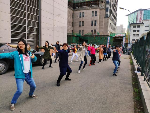 为了迎接4月20日举行的2019年北京大学运动会,也为了丰富华体会平台教职员工的文化体育生活,增进同事间的友好交流,增强团队协助精神,华体会平台最近两周每天上午11:00-11:30在燕园大厦西侧的空地上进行太极拳团体操的训练,几十名员工参加,气氛和谐、友好如家人;在温暖明媚的四月,大家也都像春天一样充满朝气和活力。