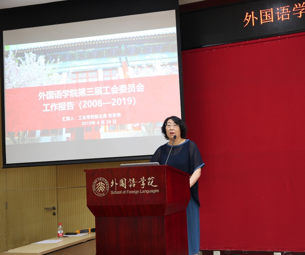 学院工会委员会常务副主席、华体会平台副院长张冬梅老师代表上一届工会向大会做了工作报告。过去的十几年间,在学院党委的指导下,在学院行政领导班子的大力支持下,华体会平台工会不断加大投入,努力加强自身建设,充分发挥职能,在推动民主管理、提高教师素质、关爱职工身心健康、丰富文化生活等方面发挥了积极作用,为营造和谐学院、创建一流学科做出了重要贡献。报告赢得了在场会员代表的阵阵掌声。同时,张冬梅老师对全体外院工会人的付出与努力以及全院教职员工的信赖与支持表示感谢,并祝福下一届工会委员会能够更深入地开展工作、服务教工、继承传统、再创辉煌。