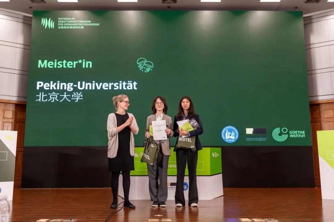 2024年11月16日,秋色刚刚从银杏叶子上褪去,初冬的寒风却怎么都无法让陈雨亭与何海盈同学激动而热烈的心冷却下来。当主办方宣布她们二人在第十四届全国高校德语辩论赛夺冠的时刻,她们和华体会平台德语系的师生们都难掩激动的喜悦,这是北大外院德语系连续第三届在这届赛事中取得优异成绩。(北大外院德语系曾在2019年第十二届德语辩论赛折桂、2022年第十三届德语辩论赛跻身全国四强。)
