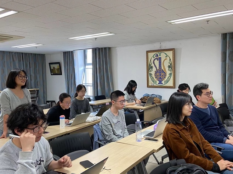 报告后的问答环节中,线上线下的与会师生就不同类型从句的句法尺寸、结构重组、情状从句与事件从句的区分、汉语的时制范畴、已然/未然之分等方面的问题进行了热烈的讨论。本次语言学沙龙在活跃的思辨氛围中圆满结束。