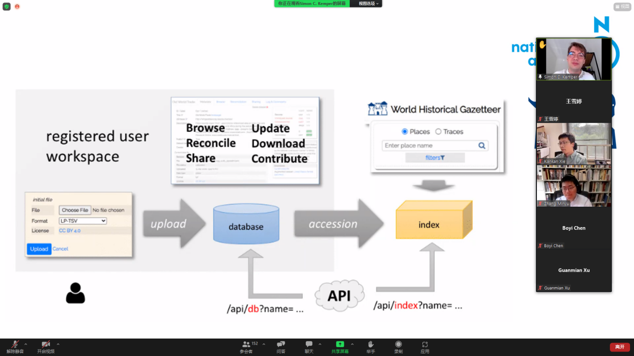 肯珀老师提出,一手资料的数字化与可视化能极大助力学者们对相关区域的研究,并帮助学者们找到研究相对不足甚至空白的领域。通过对地图等历史材料可视化,学者们能更直接地观察聚落分布、自然环境的长时段变化。他表示,这些技术看似复杂,但最终目的其实是形成易于普通人使用的数据库搜索引擎。