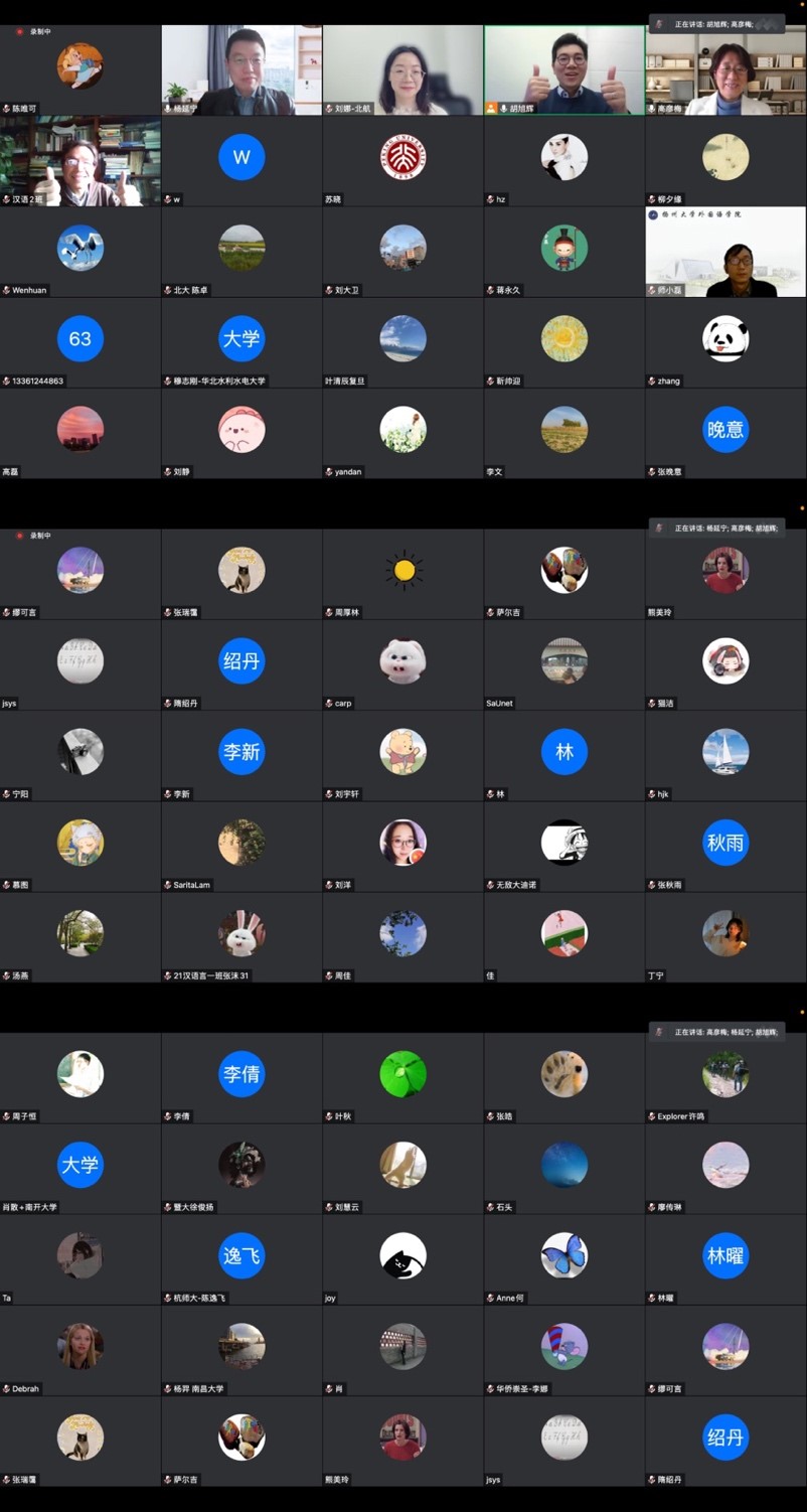 问答环节中,杨老师与线上的与会者就报告中的细节、潜在的研究课题、理论语言学研究等问题进行了热烈的讨论。本次语言学沙龙不仅让与会者了解了构式演变的内在驱动力量和构式演进的跨语言共性,也激发了与会者对于理论语言学研究的深刻思考。