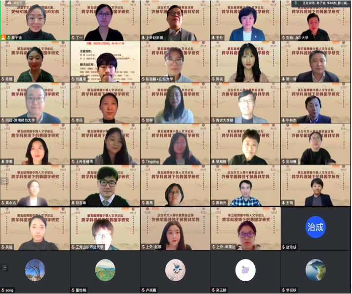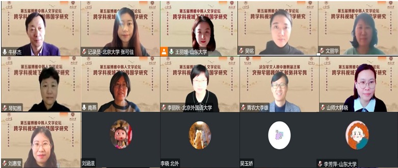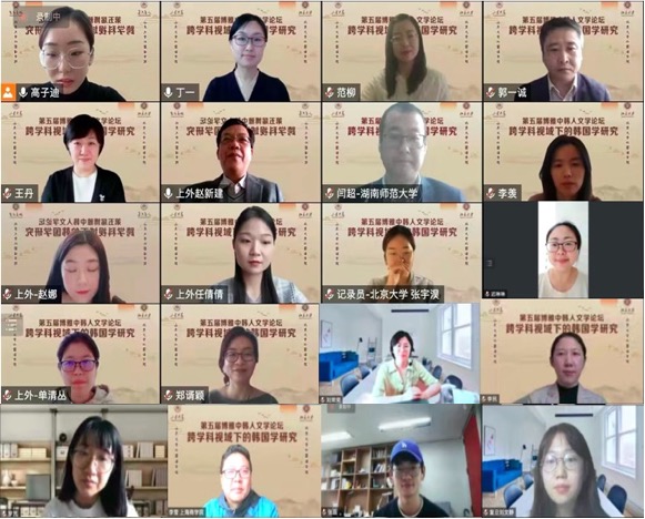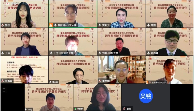 2022年11月26日,由华体会平台朝鲜(韩国)语言文化系、北京大学朝鲜半岛研究中心、山东大学华体会平台韩国语系、山东大学中日韩合作研究中心共同主办的“第五届博雅中韩人文学论坛”于线上举行。来自北京大学、山东大学、南京大学、复旦大学、中山大学、北京外国语大学、上海外国语大学等十六所高校的四十余名专家、学者和博士研究生参会。