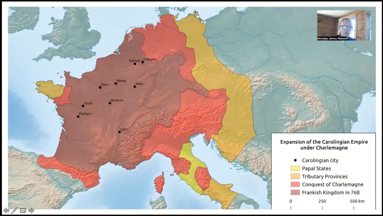 沃特森教授讲解查理曼大帝治下的加洛林帝国版图