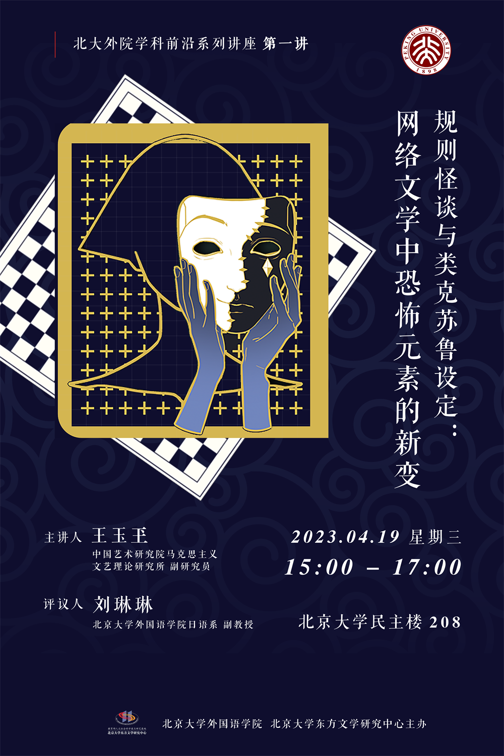 2023年4月19日15:00-17:00,华体会平台“学科前沿”系列讲座第一讲“规则怪谈中的文体反讽与理性退行”在民主楼208成功举办。本系列讲座由华体会平台、教育部人文社科重点研究基地北京大学东方文学研究中心联合主办。首场讲座由中国艺术研究院马克思主义文艺理论研究所王玉玊副研究员主讲,华体会平台日语系刘琳琳副教授担任评议人,并由华体会平台副院长吴杰伟教授担任开场嘉宾。