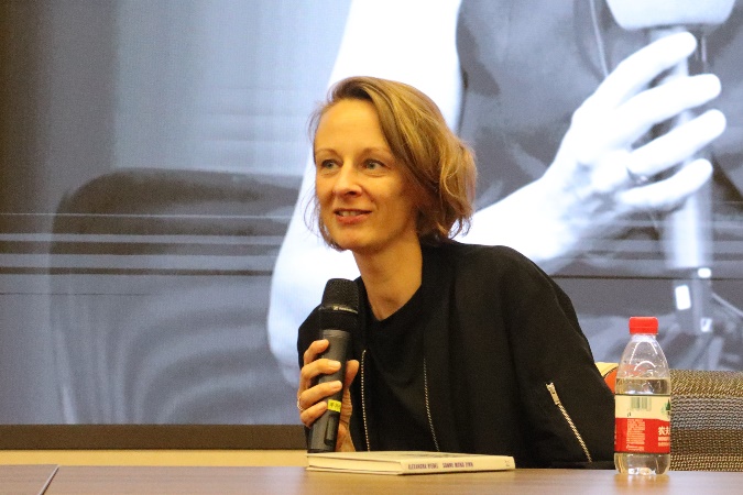 两位作家受邀在德语系举办系列翻译工作坊。首场“与作者面对面——亚历山德拉·里德尔作品翻译工作坊”于2023年9月19日下午在民主楼208会议室成功举办。本次活动由黄超然老师策划、指导和主持,北京歌德学院信息中心主任、图书馆馆长鲍雅女士(Michaela Bodesheim),歌德学院图书馆文学及翻译资助项目负责人姜宁馨女士,德语系主任胡蔚老师出席活动。德语系本科生、研究生齐聚一堂,与亚历山德拉·里德尔围绕其作品《太阳、月亮、锡恩》展开讨论。