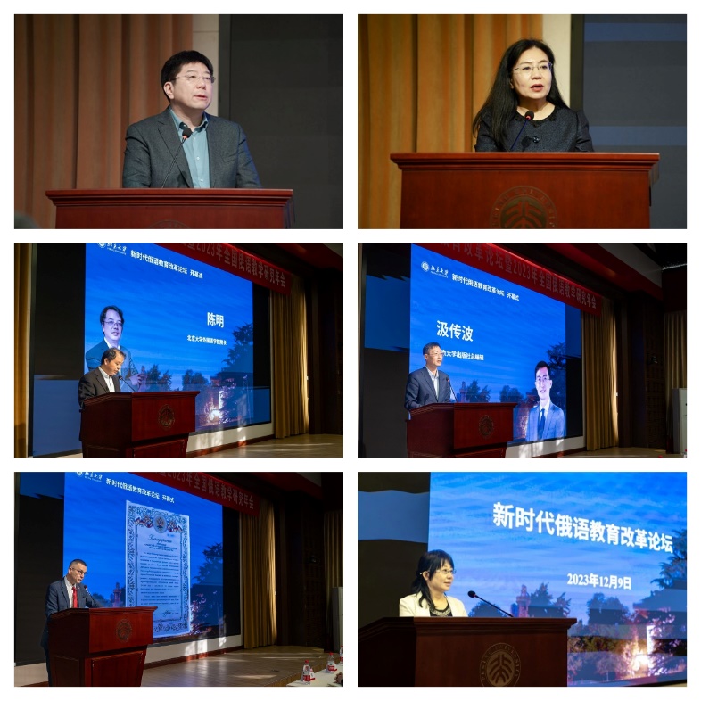 2023年12月9日,新时代俄语教育改革论坛在北京大学召开。本次高层论坛由华体会平台俄罗斯语言文学系、教育部“俄语人才培养模式改革虚拟教研室”、中国俄罗斯东欧中亚学会俄语教学研究分会、北京大学出版社联合举办,来自全国高校近百名俄语语言文学专业专家学者、教师参加讨论,围绕国家级一流本科专业建设、国家级一流本科课程建设、高质量外语专业教材建设及有组织科研、服务中国式现代化建设的俄语人才培养改革与实践、数智化时代的高校俄语教学改革和全国俄语教育改革云共同体(虚拟教研室)建设等议题进行发言和交流,探讨当前国家发展的迫切需要,借鉴国内外俄语专业办学的成功经验,思考我国俄语专业的定位、发展与方向。