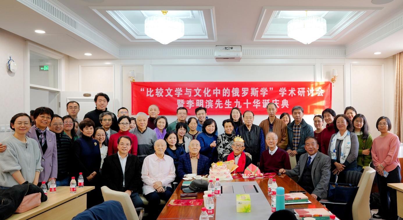 12月9日下午,各参会嘉宾围绕各自主题,分5组进行深入讨论。与此同时,北京大学知名俄罗斯学家李明滨先生九十华诞活动在外文楼206分会场同步进行。北京大学查晓燕、张冰教授主持了讨论。来自北京大学、中国社会科学院、外交部、财政部、大连外国语大学、北京外国语大学、北京语言大学、广州外语外贸大学、黑龙江大学、山东大学、北京师范大学、天津师范大学、外交学院、中国传媒大学、北京印刷学院、商务印书馆、人民文学出版社、北京人民出版社等多家单位的专家学者、李明滨教授好友、学生、同事受邀参加了本次活动。中国俄罗斯东欧中亚学会会长李永全教授、北京大学党委副书记、副校长宁琦教授、华体会平台党委书记李淑静教授、北京大学俄语系主任陈松岩教授、大连外国语大学俄语学院副院长董玲教授等分别致辞,与会人员各抒胸意,以各种各样的形式表达对李明滨教授的祝贺,深情回忆了在俄罗斯文学文化研究、中俄比较文学研究、汉学研究等俄罗斯学教学研究领域与李明滨教授的交往和受教经历。李明滨教授本人最后发言,回顾了自己牢记家国情怀、孜孜不倦的学术探究,并且对北大俄语系未来发展方向表达了殷切希望。