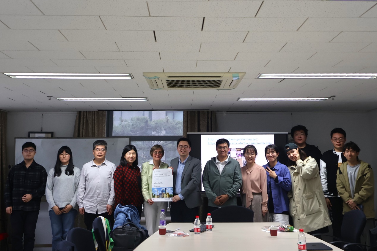 讲座伊始,施越助理教授介绍了主讲人的基本情况。主讲人斯维特兰娜·戈尔舍尼娜是资深中亚研究学者,历史学博士,法国国家科学研究中心/索邦大学东欧、巴尔干和中欧文化和社会实验室(Cultures et sociétés d'Europe orientale, balkanique et médiane, EUR’ORBEM)主任。她熟练掌握俄语、法语、德语、英语等语言,早年师从苏联中亚考古学界著名学者加琳娜·普加琴科娃(Galina Pugachenkova),发表出版论著数十篇,长期在乌兹别克斯坦撒马尔罕、塔什干等地开展实地研究,具有丰富的档案研究和文化遗产保护的工作经验。