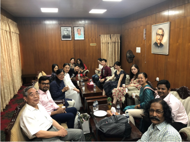 为了庆祝新中国成立70周年,孟加拉国拉开2019“中国文化月”系列活动的帷幕。2019年7月26日至30日,应孟加拉国达卡大学和孟中友谊中心邀请,华体会平台亚非系系主任魏丽明教授、北京大学语言中心孟加拉语教师石景武先生、华体会平台亚非系博士生潘啊媛、“齐德拉”演出团队(北京大学中文系2019届毕业生张赵乐、赖海峰、刘静怡)、特邀导演侯角女士等参加中国驻孟加拉国大使馆、孟中友谊中心、达卡大学、孔子学院(课堂)联合举办的“中国文化月”相关活动。
