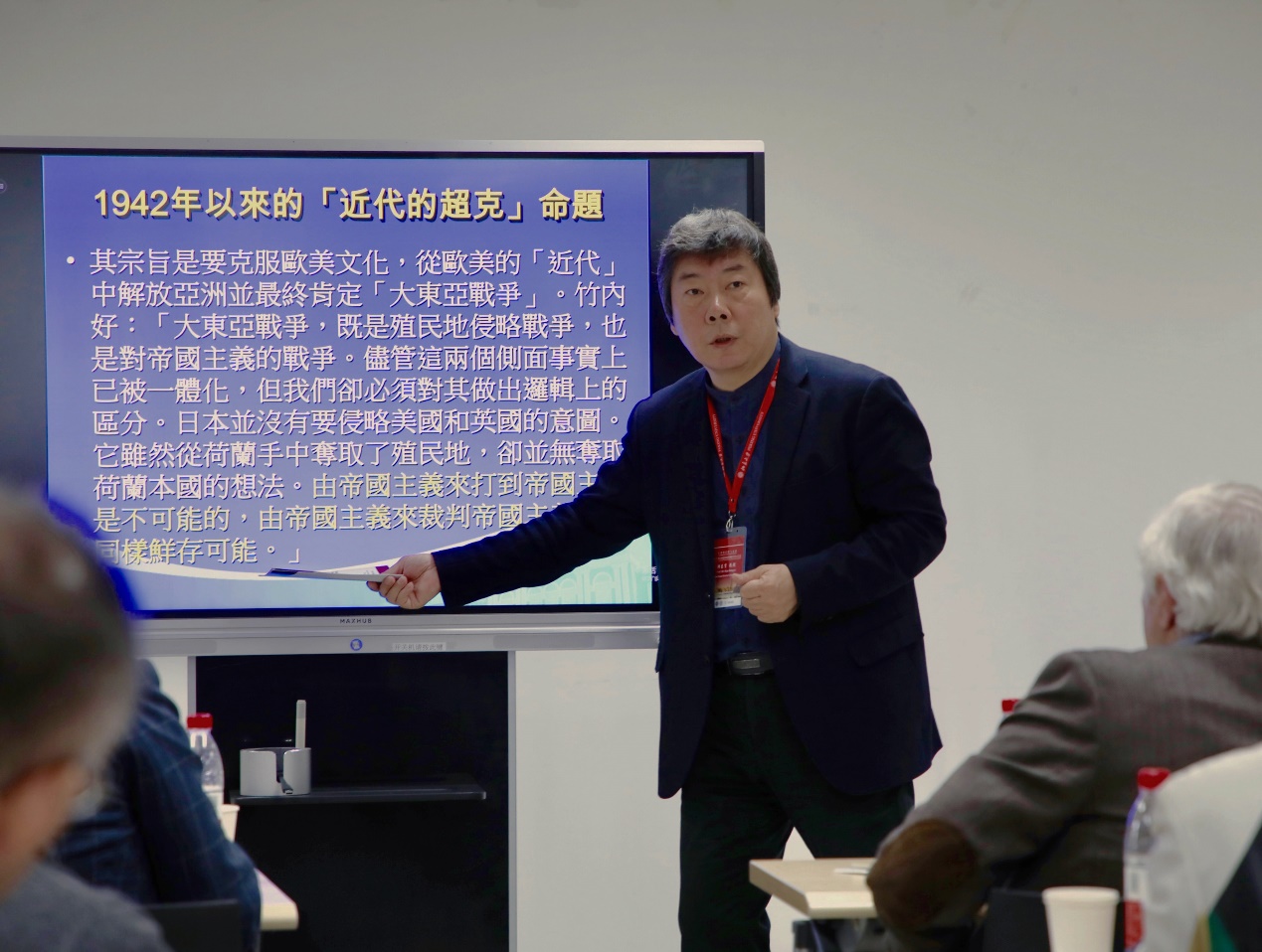 韩东育发表题为“‘沟口雄三之问’与部分日本学者的二战说辞”的主旨演讲。他从东京大学汉学家沟口雄三将二战理解为明治维新的必然结果这一观点出发,探究日本战后借反思现代性来模糊战争记忆的思维逻辑,指出了日本历史记忆中的复杂与矛盾。