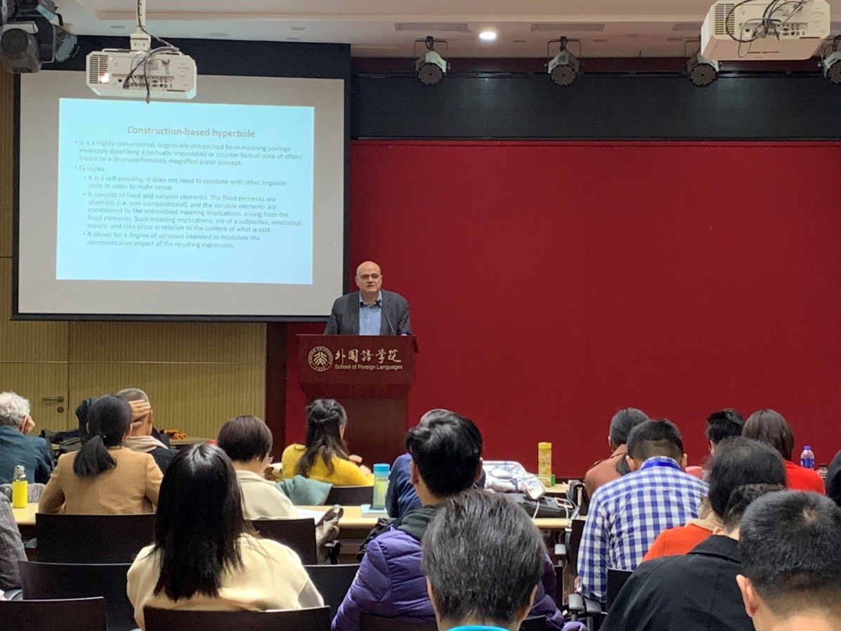 2019年11月8日,由北京航空航天大学主办、北京大学等高校协办的第十九届中国认知语言学国际论坛(CIFCL)第十讲,暨华体会平台语言学沙龙第578期,在华体会平台新楼501举行。本次论坛邀请到了瑞士纳沙泰尔大学的Martin Hilpert教授和西班牙拉里奥哈大学的Francisco José Ruiz de Mendoza Ibáñez教授,讲座的题目分别为“结构变化和分布语义”(Constructional Change and Distributional Semantics)、“夸张意义建模”(Modeling Hyperbolic Meaning)。