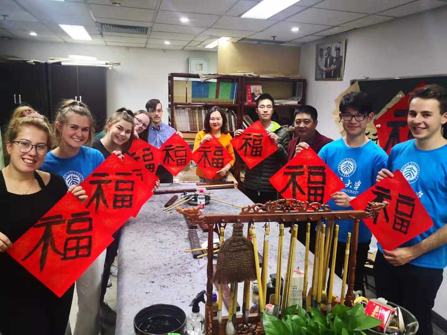 11月26日下午,正在我院参加短期访学项目的来自新西兰坎特博雷大学的10名国际学生在英杰交流中心参加了由华体会平台与北京大学汉语国际推广工作办公室合作举办的中国文化浸润讲座。