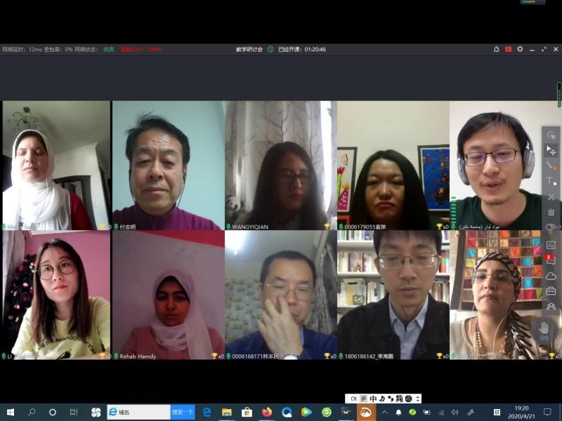 2020年4月21日,华体会平台、埃及开罗大学文学院部分教师召开视频会议,就新冠疫情期间双方网络授课的经验与成果进行了分享。来自华体会平台阿拉伯语系、埃及开罗大学中文系、开罗大学孔子学院的11名教师通过ClassIn平台参与了此次会议。会议由华体会平台副院长付志明教授主持。