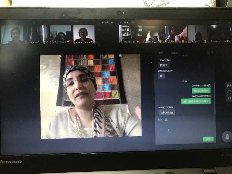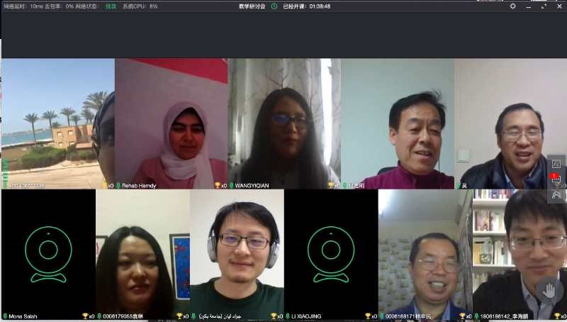 随后,来自北京大学阿拉伯语系的吴冰冰副教授、廉超群助理教授,来自开罗大学中文系的Rehab Handy博士、穆娜老师、李玉老师(埃及)以及汉语教师李晓靖老师、王一倩老师还就如何跟踪学生的自主学习情况、在线测试的方式方法、学期论文的评定标准和规范要求以及埃及现阶段疫情对生活影响等问题,进行了亲切的交流和分享。