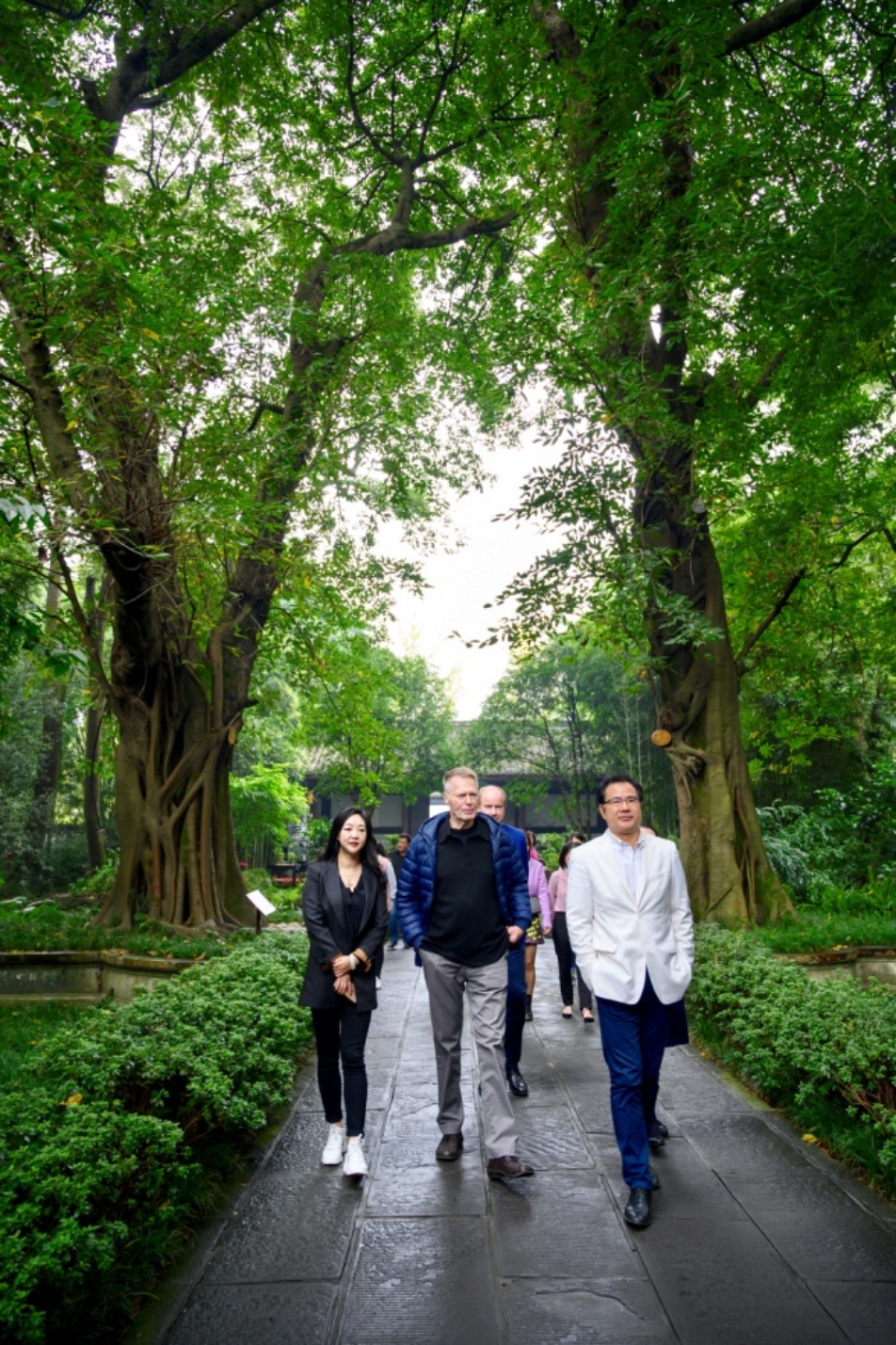 勒克莱齐奥与董强在友人陪同下参观杜甫草堂