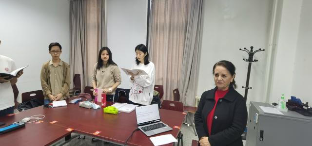 叙利亚专家萨米拉教授鼓励同学们唱好《心跳》