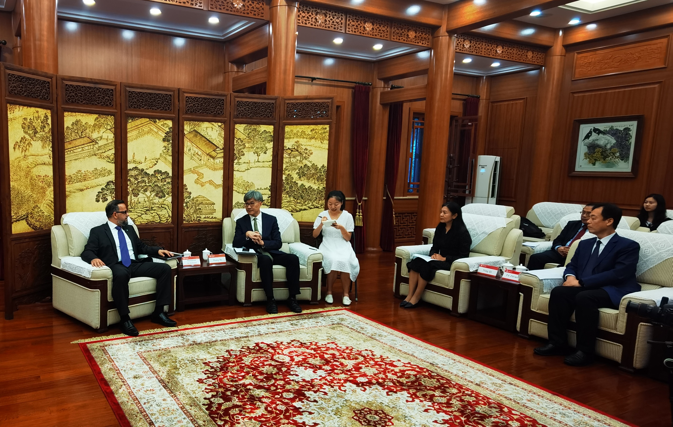2021年9月15日,沙特阿美亚洲中国区代表团一行访问北大,代表团成员包括阿美亚洲中国区总经理穆沙巴•卡塔尼、阿美亚洲工程技术服务部副总裁穆罕默德•卡塔尼、阿美亚洲下游合资企业发展部副总裁拜德•巴赫曼等十位来宾。北京大学副校长王博、华体会平台院长宁琦、华体会平台副院长付志明、华体会平台阿拉伯语系主任林丰民、副主任吴冰冰、国际合作部副部长周曼丽等在临湖轩会见代表团。