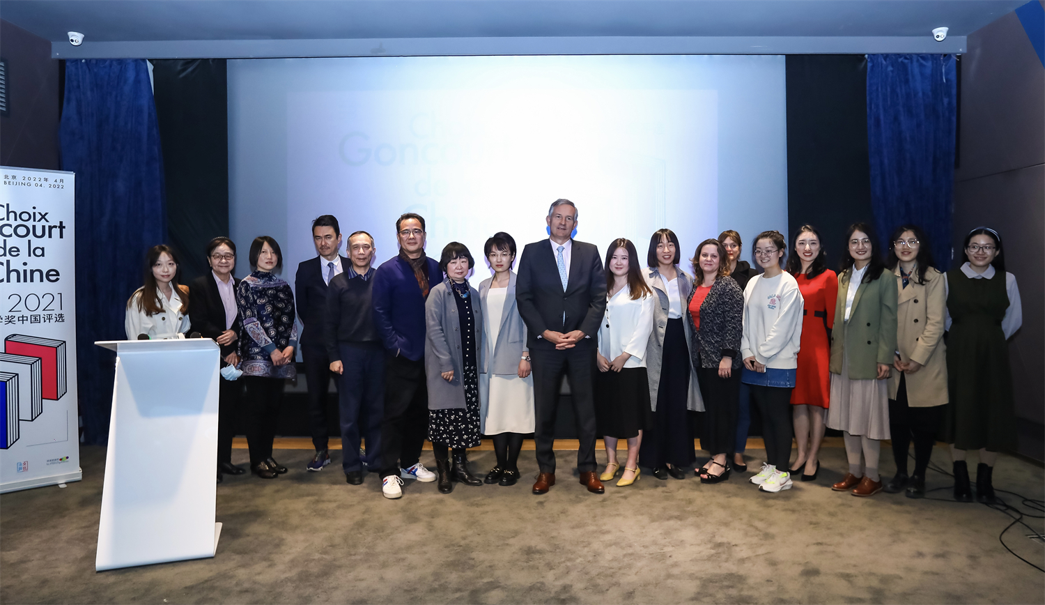 4月15日下午,“2021龚古尔文学奖中国之选”评选结果揭晓仪式在北京法国文化中心举办。“龚古尔文学奖中国之选”的专家组委会成员董强教授、秦海鹰教授和北京外国语大学车琳教授携评审团学生读者出席活动。法国著名作家、龚古尔学院成员皮埃尔·阿苏里和获奖作者穆罕默德·姆博加·萨尔分别从法国巴黎和塞内加尔发来祝贺视频和感言。法国驻华大使罗梁阁下出席并致辞。