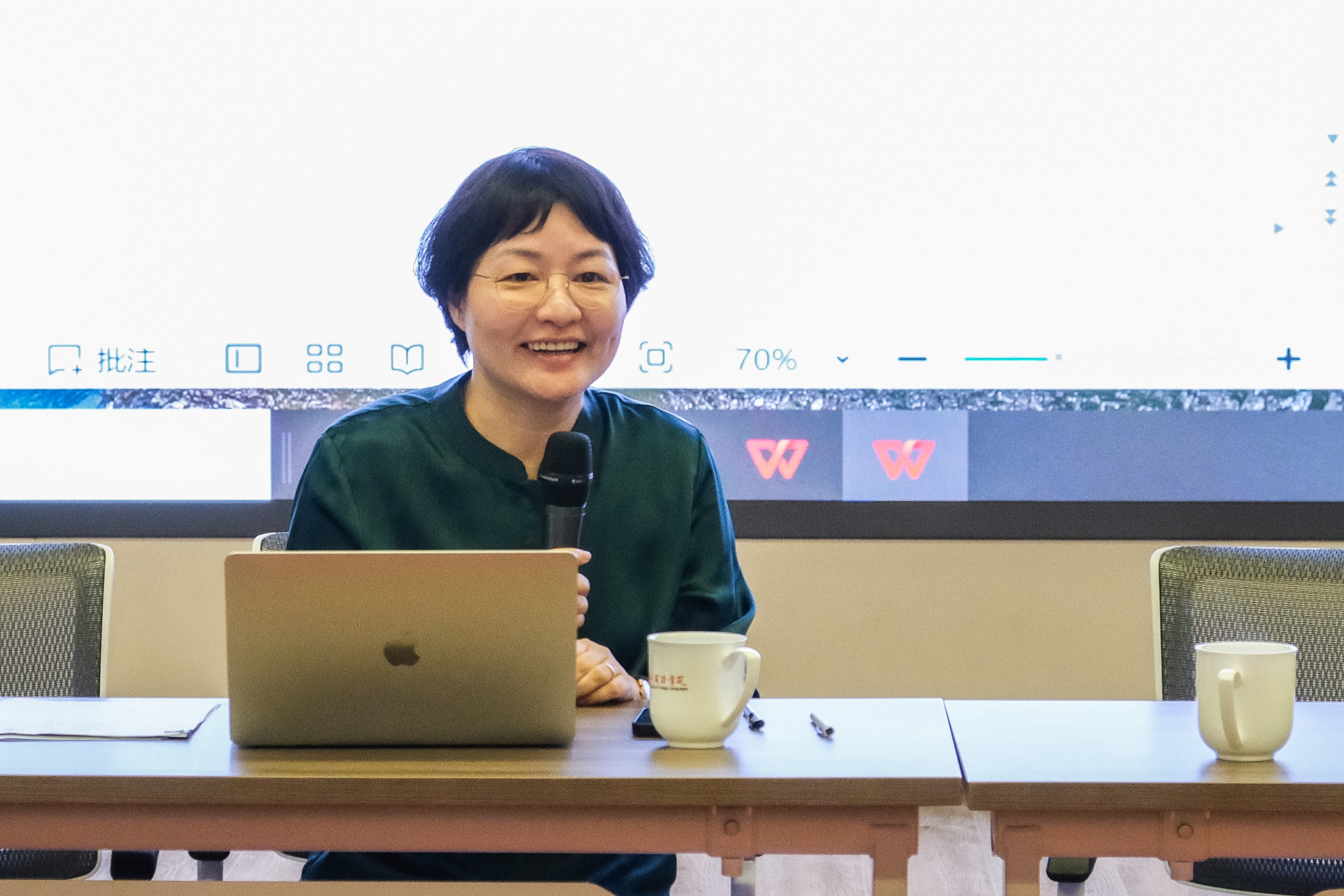 讲座伊始,胡蔚老师借教师节这一契机,向在场的所有教师表达了节日的美好祝福。随后,胡蔚老师简要回顾了北京大学与柏林自由大学在日耳曼文学领域的深厚学术渊源,并表达了希望双方持续加深合作的美好期许。作为多名北大学生的导师,希勒老师此次再次回到北大,感受到大家的热情与对学术的深切关注,倍感欣慰和感激。