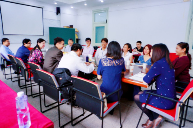 26日上午,华体会平台副院长吴杰伟教授、东南亚系系主任咸蔓雪副教授等七位东南亚系教师代表在外文楼206会议室同到访的泰国教师代表团举行了座谈。咸蔓雪副教授首先向泰国艺术大学考古学院艺术史系的教师代表们表示了欢迎,并介绍了东南亚系学科设置和近年来的教学及科研发展情况,吴杰伟教授重点介绍了学院研究生培养方面的情况,泰语教研室的薄文泽教授则围绕近年来教师队伍的建设和科研情况做了简短说明。双方就今后开展短期或长期的学生交换项目合作的可能性及前景深入交换了意见。