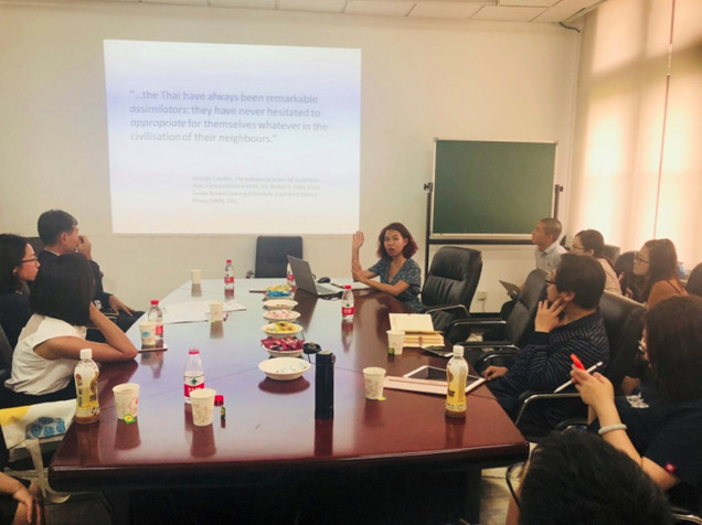 2018年5月26日,泰国艺术大学考古学院艺术史系系主任荣若•坦戎让副教授一行7人到华体会平台访问并同东南亚系师生代表交流座谈。