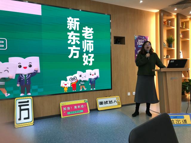 新东方集团HR冯佳对前来参访的同学表示了热烈的欢迎,为同学们详细介绍了新东方的发展历程、主营业务和企业文化等。通过介绍,同学们对新东方的业务范围、企业愿景有了大致的了解。