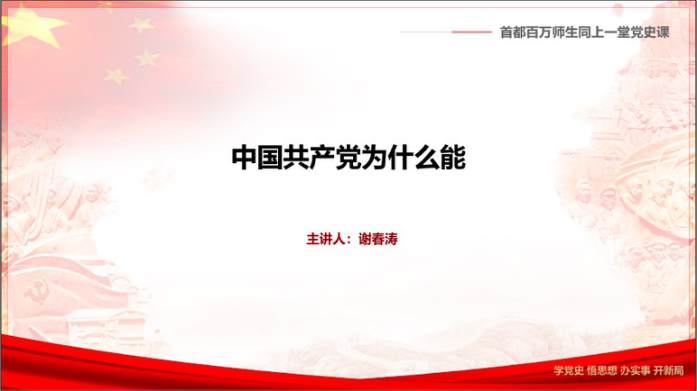 为深入学习贯彻习近平总书记在党史学习教育动员大会上的重要讲话精神, 引导党员深入学习党史,大力发扬红色传统,传承红色基因,3月31日下午,华体会平台全体学生党支部开展“首都百万师生同上一堂党史课”公开课学习活动,共同学习由中央党校副校长谢春涛主讲的《中国共产党为什么能》。16个学生党支部积极响应,结合集中观看、党小组讨论、个人学习等多种形式积极开展学习研讨。