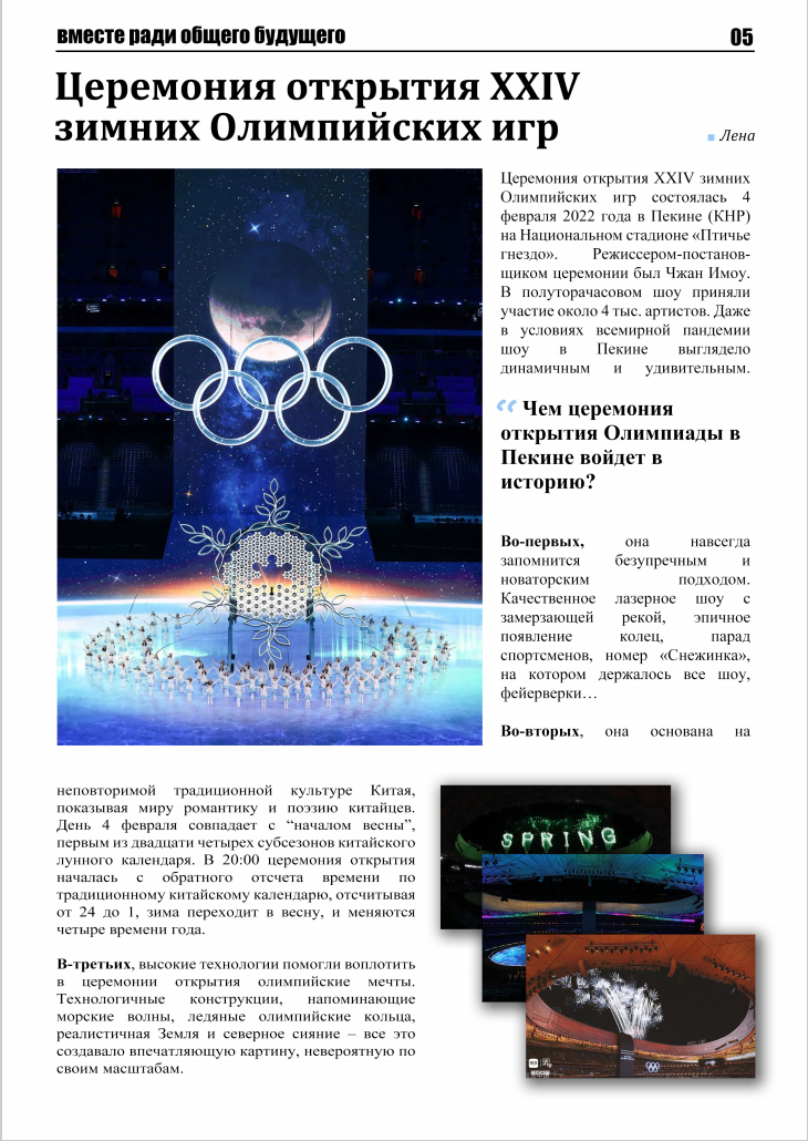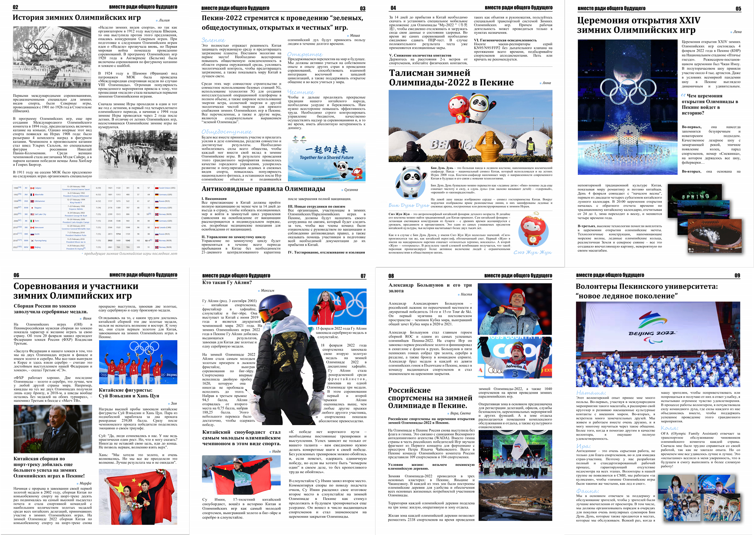 本次俄语版报纸以“一起向未来”为主题,以俄语系学生的视角呈现北京2022年冬奥会的精彩之处,表达中国青年对冬奥会成功举办的自豪之情,用外语讲好中国故事、传递中国声音。