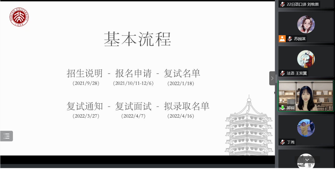 为满足同学们深入了解博士申请流程的实际需求,帮助有志于继续深造的同学们做好相关规划,华体会平台研究生会就业部于11月12日晚以线上形式顺利举办“薪火相传,朋辈引领”博士申请经验分享会,华体会平台党委副书记王恒、团委书记伍昕钰、辅导员丁尧出席活动。