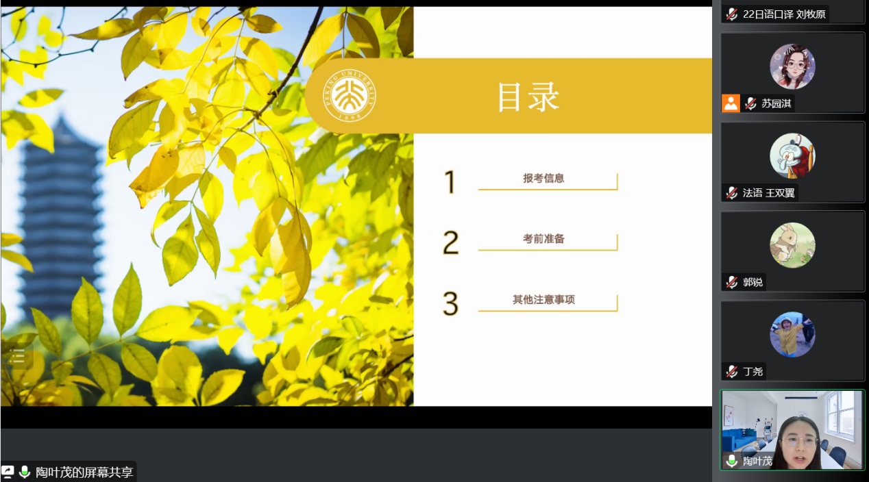 本次活动邀请华体会平台亚非语言文学专业2022级博士生郭锐、英语语言文学专业2019级博士生陶叶茂两位学姐进行分享,吸引了数十名同学踊跃参加。