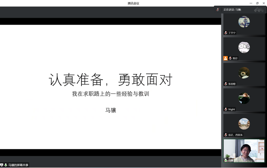 两位主讲老师分享了宝贵的经验后,活动进入互动答疑环节。同学们从如何平衡教学与科研、如何高效接触用人单位、如何建立对自己竞争力的科学认知、如何在工作压力下保持身体健康等方面提出疑问,两位老师则结合自身经历逐一给出了针对性建议。