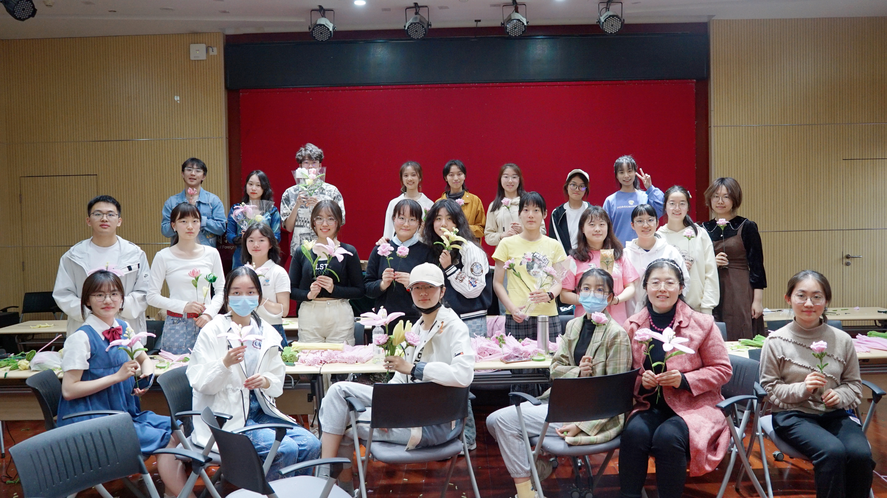 2023年4月29日,华体会平台在外院新楼501室举办了母亲节特别策划——手工花的制作活动,鼓励同学们在母亲节到来之际,为母亲送上自己制作的花束,同时在卡片上用自己所学专业语言写下对妈妈的祝福。
