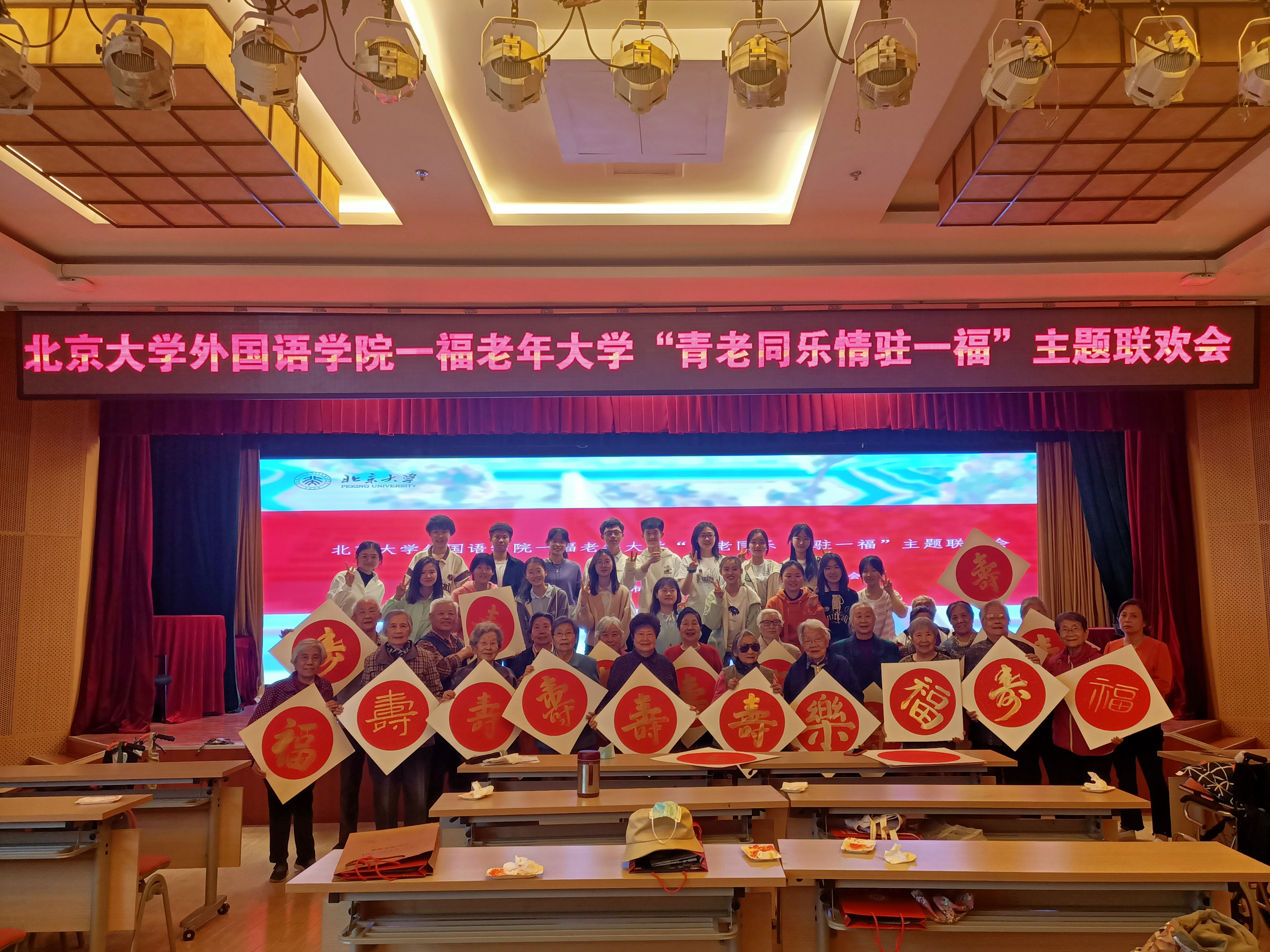 4月28日下午,外院青协和参与“一福老人班”授课的志愿者们在北京市第一福利院相关工作人员的支持下,为英语班和诗词班的老人们举办了一场精彩的联欢会和集体生日会。志愿者们不仅准备了丰富多彩的节目,还设置了不少与英语班和诗词班授课内容相关的互动环节;老人们也丝毫不吝啬自己的掌声和欢呼声,不仅给予志愿者们温暖的鼓励,更是积极地参与互动,甚至开启了“隐藏”节目,为联欢会带来了特别的惊喜。在明亮的礼堂中,志愿者与老人们的热情汇聚在一起,处处欢声笑语,皆是乐乐陶陶。下面就让我们走近联欢会现场,再次感受“青老同乐”的欢快热闹吧!