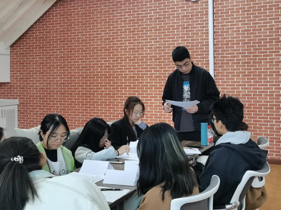 讲解环节结束后,同学们按照“体制内”和“体制外”两个不同的求职方向分成三个小组进行模拟面试。三组同学分别就“城市文明养狗问题”和“唐僧西天取经选人排序”两个题目展开讨论。一小时后,三组同学均顺利形成统一意见,按组进行团队汇报。面试期间,面试官从反应灵敏性、发言主动性、概括准确性、氛围营造力、待人尊重感等维度,对同学们的表现进行了评估。