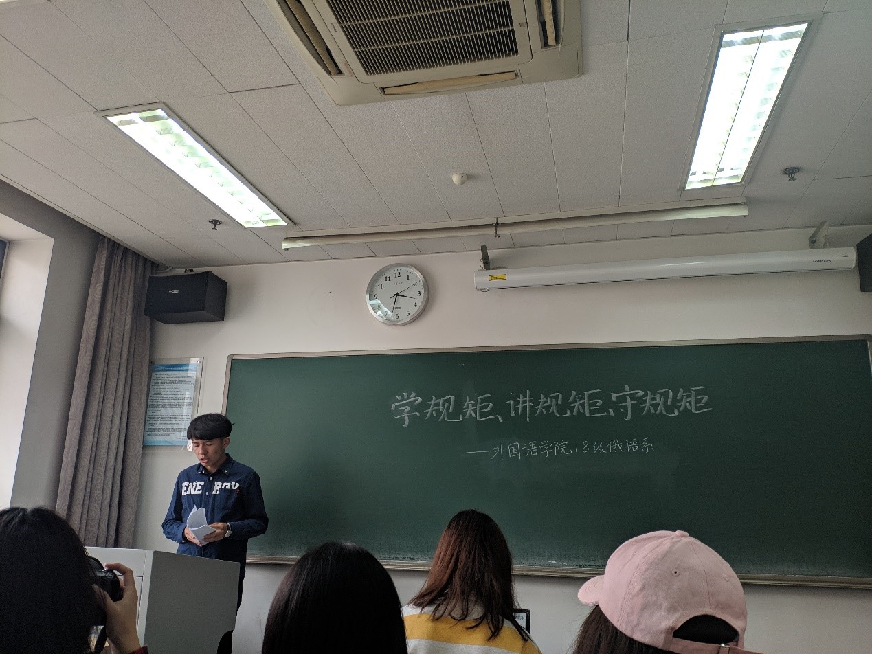 华体会平台2018级俄语专业本科生举办 “学规矩、讲规矩、守规矩”主题班会