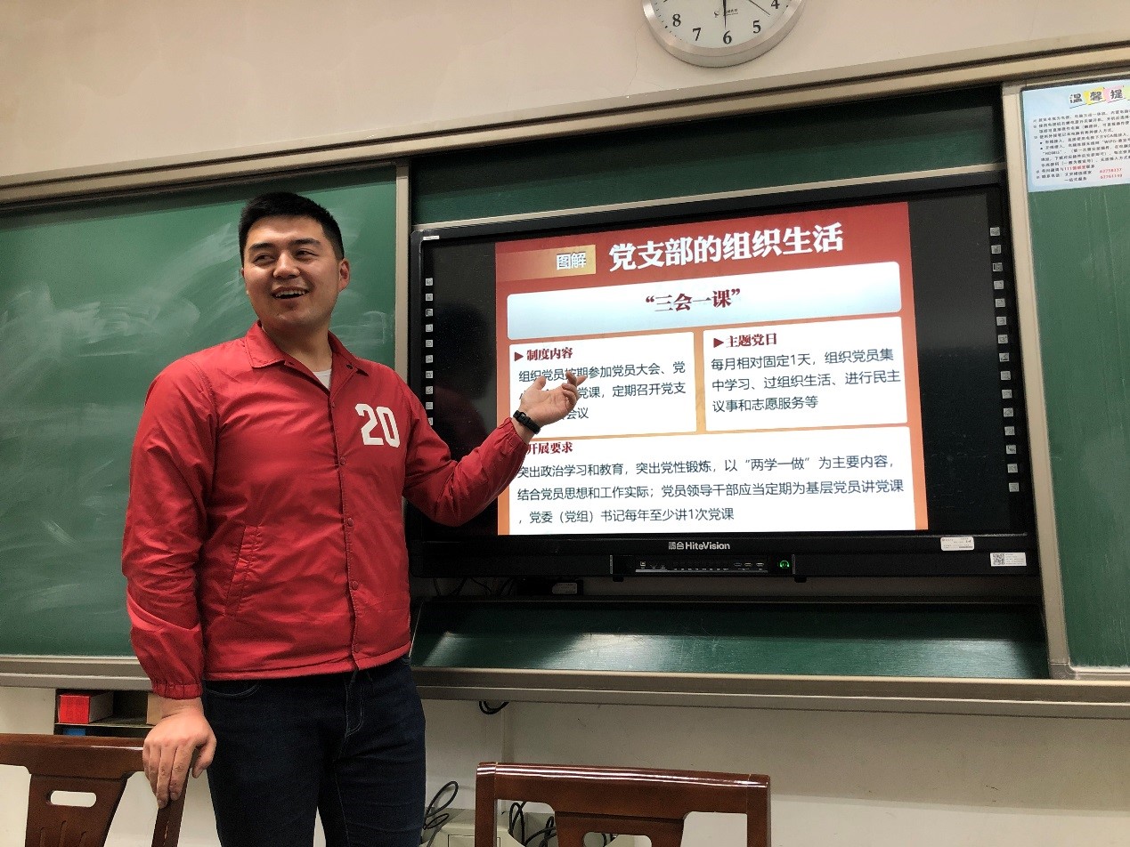 本次会议除了讨论规定支部党员大会、支部委员会、党员小组会、党课在时间和内容上的要求外,还鼓励党支部委员会成员与普通党员共同申请担当学习会议组织人和负责人,积极参加学习会议准备工作当中,营造一种氛围活泼向上、形式丰富多样的党课。内容上要求注重围绕党的基本知识、重大方针政策、最新理论成果,结合自身领会和真实体验,强化交流和互动,增强党课的吸引力和感染力,使讲党课成为提高认识、凝聚共识、增强党性、强化自觉的过程。