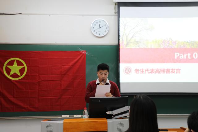 随后,上一任院团校秘书处秘书长、华体会平台南亚系印地语专业2017级本科生高熙睿同学作为老生代表进行了发言。他以前往四川大凉山社会实践的亲身经历为例,讲述了他所感受到的建设祖国的使命感。他祝愿同学们能够在团校收获理论和能力,同时怀着使命感和初心,找到前进的方向。