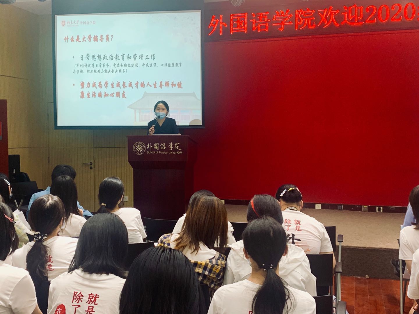 9月3日晚,华体会平台2020级本科新生见面会暨军训动员会在华体会平台新楼501召开,院长宁琦,党委书记李淑静,副院长付志明,党委副书记王恒出席会议,燕园派出所崔金忠警官,教务办公室崔桂红、邵晓梅、李宁,各新生班主任,军训领队教师王渊、范银天、孟聃,院团委书记卢敏,专职辅导员于丹,选留辅导员王乃懋、王志峰及2020级全体本科新生参加会议。会议由于丹主持。