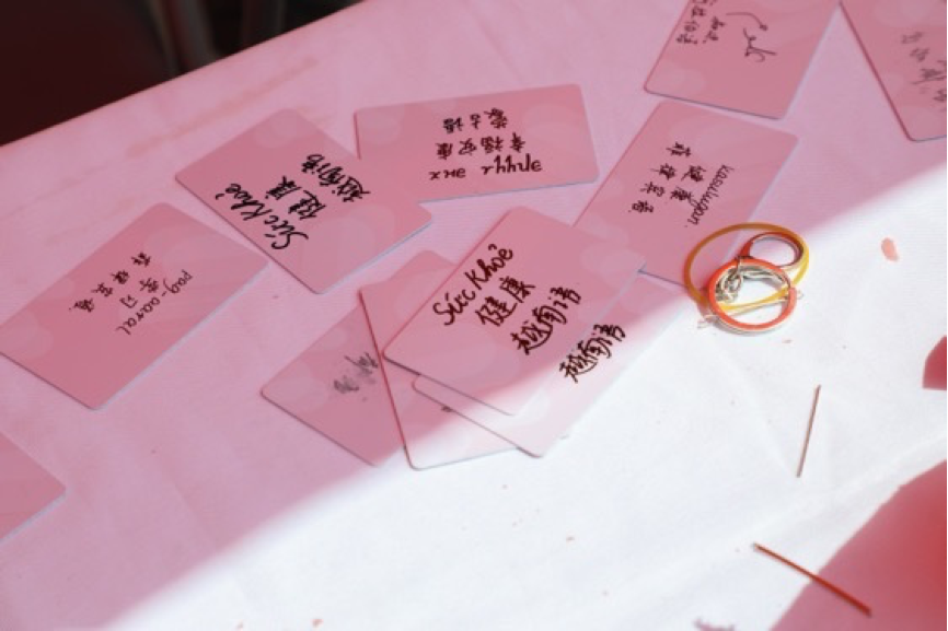 兑奖区域为同学们准备了由华体会平台学生会和新媒体中心精心设计的多种文创产品,包括卡套、多语种祝福卡片、明信片、电脑贴纸、马克杯、帆布袋等。这些文创产品具有鲜明的外院特色,用不同的语言写满对同学们的祝福,展现了丰富多彩的世界文化,同时也传递了满满的爱。
