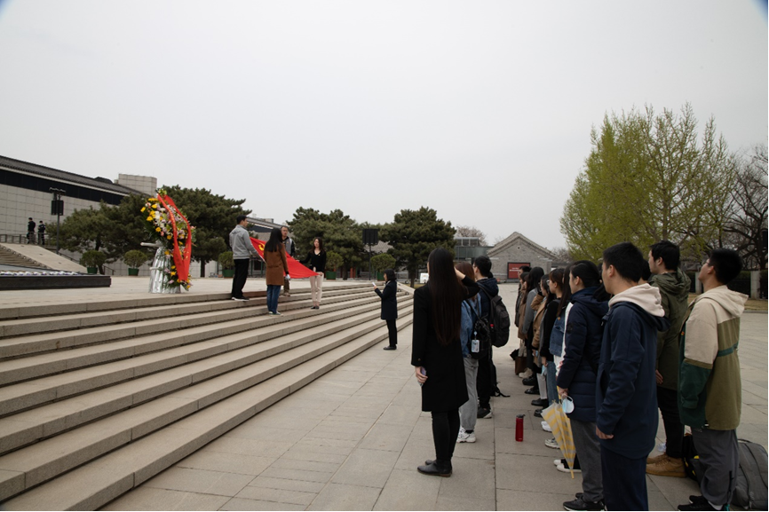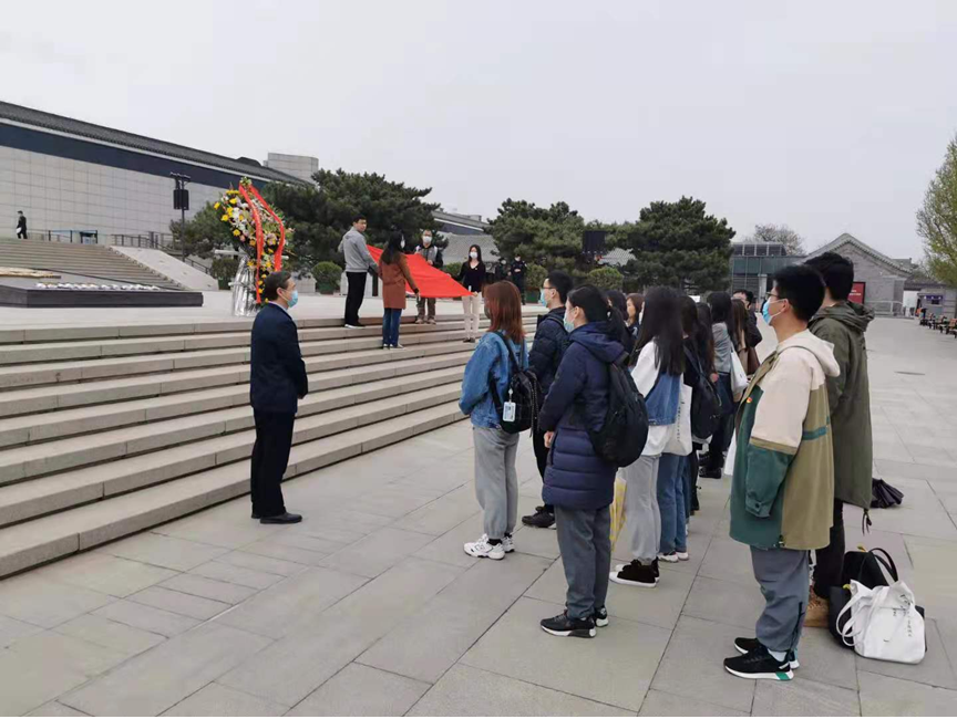 随后,在中国人民抗日战争纪念馆副馆长董立新和华体会平台院友吕曦的带领下,师生来到抗战馆进行实地学习。清明时节寄哀思,在董馆长的指引下,师生在独立自由勋章雕塑前向先烈默哀致敬。董馆长表示,在建党一百年的关键历史节点,我们当代中华儿女应当“缅怀英烈志 奋进新征程 ”, 在缅怀先烈、寄托哀思的同时,更应当砥砺奋进,在新的一百年中创造新的辉煌。