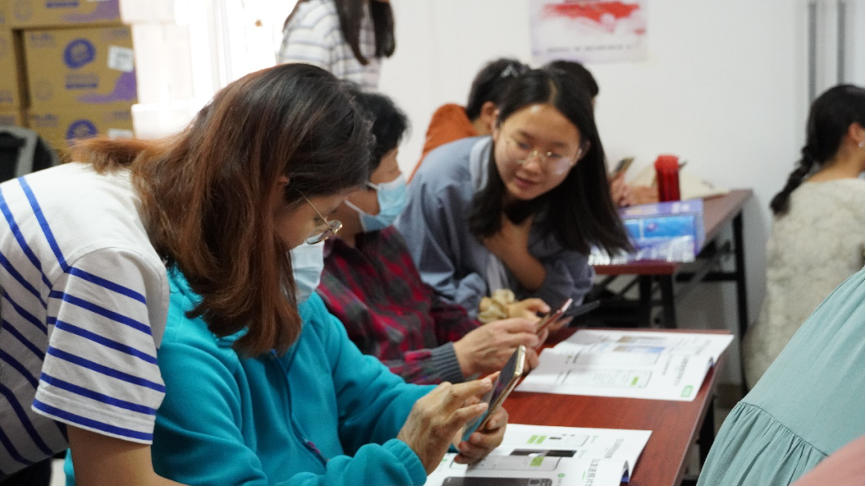 活动开始后,大家各自找到了自己的“学员”,从进入界面开始教学微信调整字体、发送图片、视频通话等功能。同学们惊讶地发现长辈们都非常好学,对于每一个细节都要“较真”,准备的问题解决完了他们还时不时提出新的问题。经过同学们细致的教学和辅导,他们已经熟练掌握了微信的使用方法,并且积极地向大家展示。