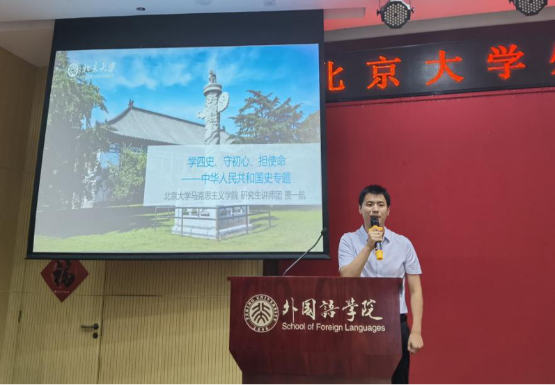 在“学四史、守初心、担使命——中华人民共和国史” 专题中,贾一航带领同学们回顾了建国初期的中国社会建设过程。通过“新中国建设的理论溯源”、“建国初期的内政与外交”、“专题研究:建国初期的妇女解放运动”三部分的介绍,他讲述了中国共产党如何将理论结合实际、完成国民经济恢复发展与社会主义改造的过程,并鼓励同学们从专题研究中以小见大,积极思考。
