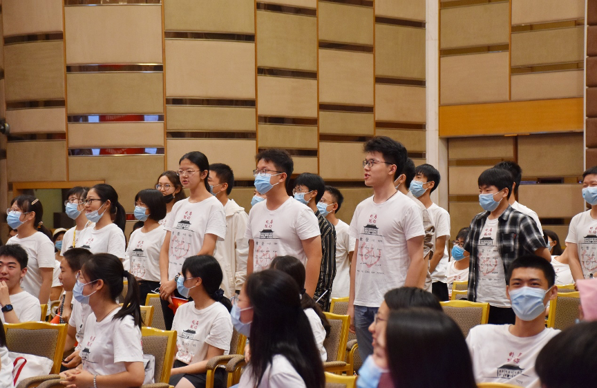 最后,全体师生齐唱《燕园情》,并挥动着手中的国旗,唱响《我和我的祖国》。迎新典礼在热烈的掌声和歌声中圆满结束。