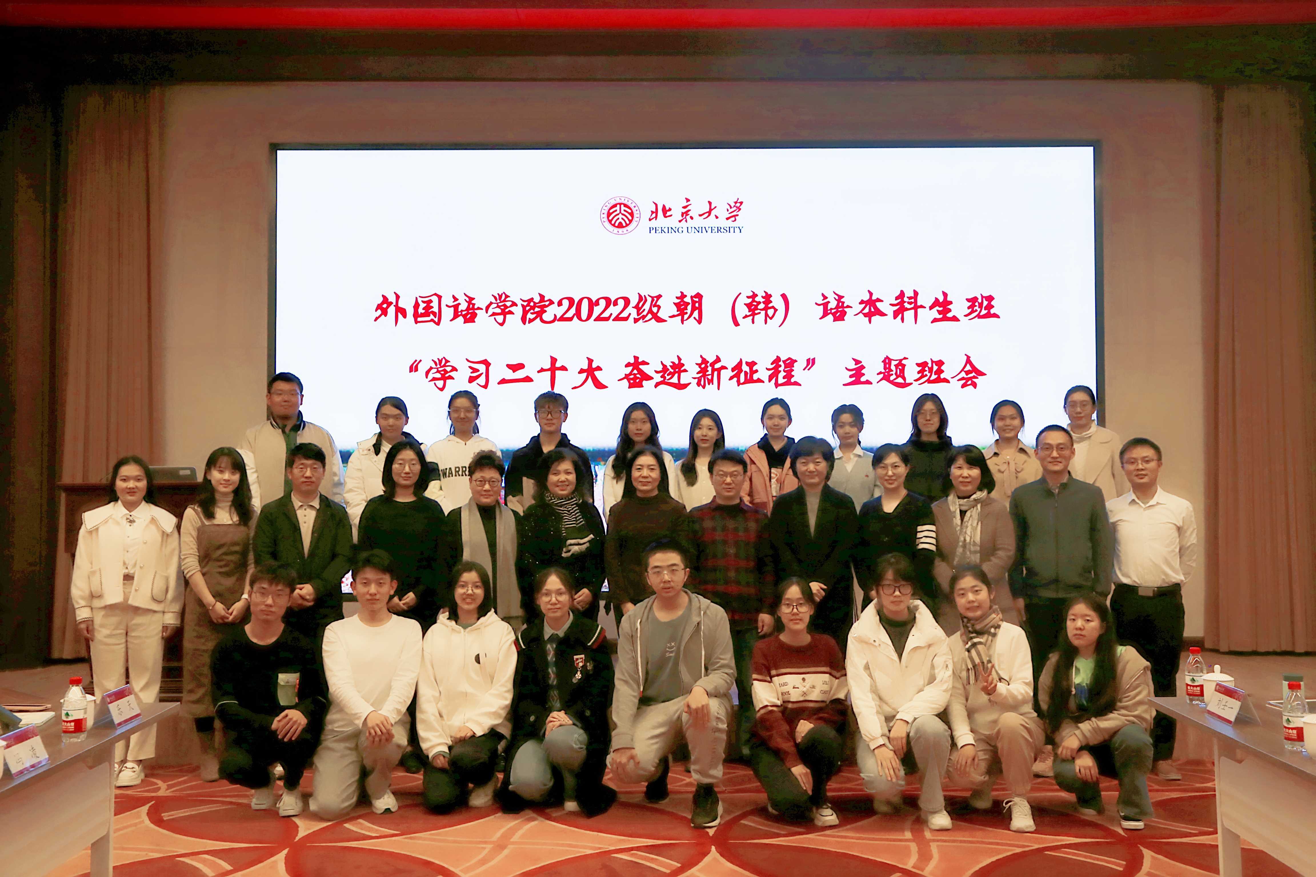 11月5日下午,华体会平台2022级朝(韩)语本科生班在民主楼208会议室召开“学习二十大,奋进新征程”主题班会。北京大学党委副书记、副校长,2022级朝(韩)语本科生班第二班主任宁琦,华体会平台党委书记李淑静,马克思主义学院党的建设研究所所长王久高,华体会平台副院长王丹,华体会平台党委副书记王恒,朝(韩)语系主任李婷婷,朝(韩)语系教师代表琴知雅、文丽华、宋文志出席班会。班会由朝(韩)语系副主任、班主任丁一主持。
