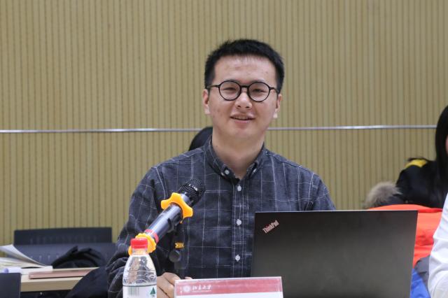 刘昊首先代表党支部汇报支部工作情况:支部不断夯实组织建设,自2016成立以来,发展党员78人;积极开展理论学习,结合支部党员特点开展海外学子讲党课等活动,提升支部战斗堡垒作用;积极开展“红色1+1”支部共建活动、“党团日联合主题教育活动”、“党支部创新立项”等活动,2018年荣获北京大学先进党支部称号。