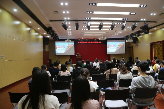 5月15日晚5:40,华体会平台在新楼501召开“世界在我脚下,祖国在我心中”外交部遴选经验分享会。会议由华体会平台辅导员丁尧主持,2016级波斯语专业本科生赵宇丹、2016级俄语专业本科生杨泽坤、2015级德语专业本科生高泽宇三位已经通过外交部遴选的同学参加经验分享会并分享自己的遴选考试经验,2019年通过外交部遴选初审的同学和2018级有志于外交事业的同学近百人参加了本次分享会。