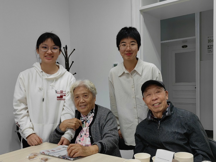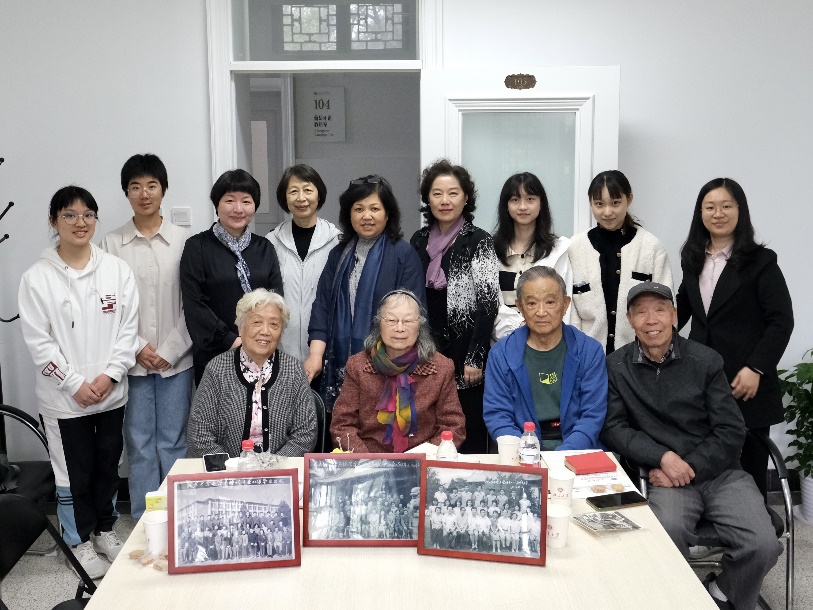 王玉昌、房秀兰校友与德语系师生在民主楼前合影