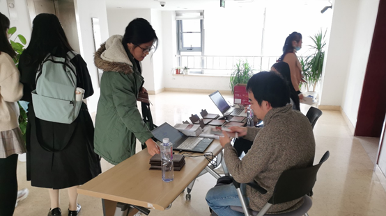 兼职辅导员为学员发放培训班学员手册与外院明信片