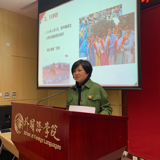 李老师为学员分享参与2019年国庆群众游行“凝心铸魂”方阵的经历